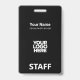Personnalisez facilement ce badge de nom professionnel personnalisé sans photo ni logo d'entreprise. Un design d'entreprise simple à l'avant et à l'arrière imprimé le même en cool total couleurs noir et blanc entièrement personnalisable en tailles avant et arrière, sans-serif polices de base et moderne et un look professionnel et clair, parfait pour les employés de petite entreprise, patron, invités. Ces fournitures de badges d'identification d'entreprise sont disponibles avec cordon, clip métallique ou avec rétractable. Pas de commande minimum, mais économiser de l'argent et profiter de rabais Zazzle par plusieurs commandes!