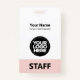 Personnalisez facilement ce badge de nom professionnel personnalisé sans photo ni logo d'entreprise. Un design d'entreprise simple à l'avant et à l'arrière a imprimé le même en féminin élégant, mignon couleur rose et blanc entièrement personnalisable en tailles avant et arrière, sans-serif polices de base et moderne et un look professionnel et clair, parfait pour les employés de petite entreprise, patron, invités. Ces fournitures de badges d'identification d'entreprise sont disponibles avec cordon, clip métallique ou avec rétractable. Pas de commande minimum, mais économiser de l'argent et profiter de rabais Zazzle par plusieurs commandes!