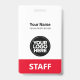 Personnalisez facilement ce badge de nom professionnel personnalisé sans photo ni logo d'entreprise. Un design d'entreprise simple à l'avant et à l'arrière imprimé le même dans des couleurs rouge et blanc qui écorchent entièrement personnalisables en tailles avant et arrière, sans-serif polices de base et moderne et un look professionnel et clair, parfait pour les employés de petite entreprise, patron, invités. Ces fournitures de badges d'identification d'entreprise sont disponibles avec cordon, clip métallique ou avec rétractable. Pas de commande minimum, mais économiser de l'argent et profiter de rabais Zazzle par plusieurs commandes!