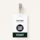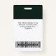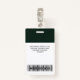 Personnalisez facilement ce badge de nom professionnel personnalisé sans photo, avec le code de la barre de numérisation et le logo d'une grande entreprise. Un design d'entreprise simple dans les tons vert foncé entièrement personnalisable en tailles avant et arrière, sans-serif polices de base et moderne et un look professionnel et clair, parfait pour les employés de petite entreprise, patron, invités. Ces fournitures de badges d'identification d'entreprise sont disponibles avec cordon, clip métallique ou avec rétractable. Pas de commande minimum, mais économiser de l'argent et profiter de rabais Zazzle par plusieurs commandes!