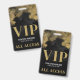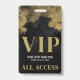Badge élégant "All Access" noir et or VIP. Un design noir et blanc avec des accents dorés (pas de véritable paillettes ou de feuille, juste de la couleur). Idéal pour les défilés de mode, les concerts, les grands événements spéciaux comme les conférences, les orateurs, ou même une fête d'anniversaire comme un sweet 16 ou une célébration du Nouvel An. Il a un look simple moderne et élégant. En bas, une police sérif audacieuse est mélangée à une typographie simple pour afficher VIP, le nom de l'événement, la date et "All Access Pass". Tout le texte et les couleurs de ce badge peuvent être personnalisés pour s'adapter à votre événement.