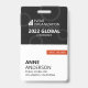 Un badge moderne pour les événements de conférence d'affaires. Le design affiche le nom de l'organisation qui organise l'événement et le nom de l'événement dans la moitié supérieure. La moitié inférieure du badge affiche le nom, l'entreprise et le rôle de la personne assistant à l'événement. Ce badge d'événement d'affaires est idéal pour les séminaires, les forums annuels, les réunions mondiales, les conférences ou les salons professionnels.