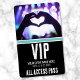 Badge d'événement spécial pour billet VIP toutes zones. Idéal pour les concerts, les grands événements spéciaux comme les conférences, les orateurs, et peut même servir pour une fête d'anniversaire. Caractéristiques : un jeu amusant sur un lieu de concert avec quelqu'un qui forme une ombre en forme de cœur avec ses mains. En arrière-plan, un mélange de couleurs violet, bleu et blanc provenant des lumières du concert. Il y a une bande bleue, mais vous pouvez la changer en n'importe quoi. En bas, une police en gras avec VIP, le nom de l'événement, la date et 'Passe toutes zones'. Vous pouvez modifier toutes les informations textuelles et les couleurs de ce badge. Vous pouvez même utiliser une photo différente si vous le souhaitez.
