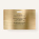 Insigne d'identité photo Faux Gold Metallic Corporate personnalisé. Personnalisez ce badge de carte d'identité d'entreprise avec le nom, la position, la photo et le logo de votre entreprise sur le côté avant et votre texte d'information personnalisé sur le côté arrière. La photo de l'employé fonctionne le mieux en format carré. Votre logo fonctionne le mieux comme un format carré PNG avec arrière - plan transparent. Le logo réservé que vous voyez sur le badge sera complètement remplacé par votre propre logo.