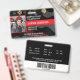 The customizable fire department ID badge features a firefighter emblem at the top that can be customized to your department as well as a place for the state logo as well. Customize with the firefighter's photo on the left. Beside the photo, the firefighter’s name, badge number, rank, and department are displayed. Add your own barcode to the back of the card, along with issue and expiration dates, and description of the firefighter, captain, chief, or office employee.