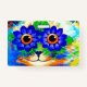 Insigne représentant la peinture animale de Louis Wain Cat Flower Eyes (1860-1939). Un chat arc-en-ciel grince largement. Des fleurs bleues recouvrent ses yeux. Un cadeau merveilleux pour l'art amoureux des chats et anglais.