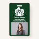 Ce badge d'identification d'entreprise immobilière verte forestière est parfaitement customisé pour un courtier qui se spécialise dans les maisons près de la nature ou des forêts. La silhouette des arbres derrière une maison de cabine en bois rond et personnalisée avec votre agent photo et nom d'entreprise de l'immobilier pour une conférence dans les bois d'arrière-plan.