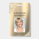Girly Gold Professional Entreprise Nom du travail, photo et titre du travail Faux Parties scintillant et Sparkle Ombre ID Photo Insigne commercial vertical. Cette conception est simple et facile à utiliser en changeant votre prénom et votre nom ainsi que votre titre de travail et votre plan de tête d'entreprise.