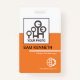 Un design de blocs de colonnes blanc et orange est accentué par une bande blanche près du centre de l'insigne. Près du haut du badge est un modèle photo pour charger des photos d'une taille de 1000 x 1000 pix. En dessous de ce modèle photo sont votre nom avec le titre de l'emploi. Vers le sud vers la base se trouve le logo global blanc en option que vous pouvez utiliser et son contact URL email.