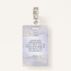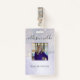 Holographique Parties scintillant violet luxueux Glam Business ID Badge. Ce design est doté d'une signature classique de script de calligraphie jeu de police contre un bel arrière - plan moderne irisé lilas violet brillant. Parfait pour un salon de beauté, coiffeur, maquilleur, technicien en ongles, fouetteur ou cosmétologue.