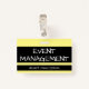 Cette humble conception de badge comporte le message "GESTION DES ÉVÉNEMENTS". Un badge comme celui-ci pourrait peut-être être utilisé pour indiquer que le porteur est un officiel lors d'un événement. [~Z0000307]
