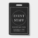 Un simple badge d'identification de carte d'identité du personnel de l'événement blanc sur noir.