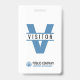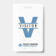 Un badge d'identification de visiteur moderne pour votre entreprise, petite entreprise, école ou hôpital. Le design simple mais élégant affiche la lettre majuscule V avec le mot Visiteur. Il comprend le nom et le logo de l'entreprise, ainsi qu'une phrase ou un slogan d'entreprise. Ce badge d'identification de visiteur moderne peut être facilement ajusté pour fonctionner comme un badge d'identification pour les bénévoles.
