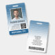Bleu et blanc - Un design d'entreprise moderne qui met en valeur les logos de votre bureau et le nom de votre employé. Cette conception de bureau branchée comprend également un numéro d'identification d'insigne, la date d'expiration et l'infirmière ou un autre titre. RETOUR : Vous pouvez ajouter un code à barres de numérisation au verso et un endroit pour ajouter des informations si le badge est perdu. Vous pouvez également modifier la couleur de l'arrière - plan. Cliquez sur le bouton personnaliser et choisissez une couleur arrière - plan pour l'avant et l'arrière.