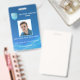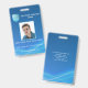 Badge d'ID photo de l'employé vertical. Conception avec arrière - plan bleu avec conception ondulante de la lumière d'onde. Ajoutez facilement le logo de votre entreprise en utilisant notre image modèle. ID avec photo, nom, nom de société, numéro d'identification ou toute autre information que vous souhaitez. Retour avec la zone pour l'information dans le badge coque se perd. Également disponible en présentation horizontale. À tous ceux qui travaillent dans les lignes, MERCI POUR VOTRE SERVICE EXTRAORDINAIRE!