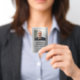 Insigne photo de l'employé en argent moderne personnalisé. Personnalisez ce badge de carte d'identité d'entreprise avec le nom, la position, la photo et le logo de votre entreprise sur le côté avant et votre texte d'information personnalisé sur le côté arrière. La photo de l'employé fonctionne le mieux en format carré. Votre logo fonctionne le mieux comme un format carré png avec arrière - plan transparent. Le logo réservé que vous voyez sur le badge sera complètement remplacé par votre propre logo.
