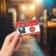 Le badge moderne rouge, or et blanc de pompier d'identification comporte une seule photo sur le devant, le numéro d'identification, le nom du service des incendies, le nom et le titre. Personnalisez avec votre propre logo et code à barres. Ajoutez les coordonnées sur le dos et votre logo. Pour modifier ce modèle, cliquez sur "customiser plus loin".