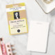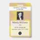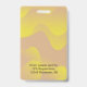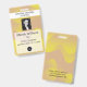 Modèle photo avec logo, badge d'identification d'entreprise pour employés, hôpital, infirmières, réunions spéciales. Ondes jaunes dégradées et informations sur un cadre transparent.