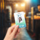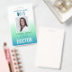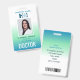Simple, moderne, bleu, vert et blanc foncé combinaison de couleurs pour badge d'identification vertical pour Docteur, avec coutume : photo, nom, nom de l'hôpital, logo, code à barres et toutes autres informations. Il est facile de personnaliser et de customiser tous les éléments graphiques et le texte. Il y a l'adresse de retour personnalisée à l'arrière. Un choix parfait pour de nombreuses professions médicales.