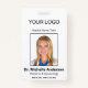 Badge d'identité photo personnalisée en blanc clair pour le médecin. Une conception simple et professionnelle de badge avec un texte et une photo clairs et larges pour vous assurer que l'identité de votre personnel est clairement lue et vue. Il vous suffit de modifier les informations pour customiser cet article.