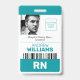 Simple et professionnel Infirmière diplômée RN badge vertical avec un logo personnalisé, conçu dans une combinaison de couleurs sarcelle, blanc et noir.
