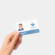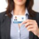 Un élégant badge d'identification pour le personnel médical et les employés de l'hôpital. Idéal pour les infirmières et les médecins des cliniques et des maisons de soins infirmiers. La conception montre une photo de l'employé, le nom de l'employé et le titre de l'emploi. En outre, inclut l'espace pour un numéro d'identification et la date d'expiration. Le nom des hôpitaux est affiché en haut à droite et comporte un logo, le nom de l'hôpital et le slogan.