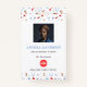 Insigne d'identification d'infirmière homologué moderne avec un motif d'instrument médical. Ajoutez votre photo, logo et code barre. Illustré et dessiné par Patricia Alvarez.
