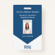 badges photo Médicales pour les professionnels de la santé avec le modèle photo du personnel et les détails que vous pouvez customiser en ligne. Créé pour un cabinet de médecin, un hôpital ou un établissement médical, ou marcher en clinique. Présenté comme un badge d'identification d'infirmière autorisée, mais peut être utilisé pour tout personnel médical tel qu'un médecin, un infirmier praticien ou une carte d'identité professionnelle en santé à domicile. Une double impression latérale afin que vos informations soient affichées quel que soit le côté du badge affiché.