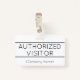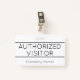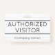 Cette humble conception de badge comporte le message "VISITEUR AUTORISÉ", ainsi qu'un nom d'entreprise personnalisable ou tout autre message personnalisé. Un badge comme celui-ci pourrait peut-être être utilisé pour indiquer qu'une personne est un invité ou un visiteur connu et autorisé dans une entreprise ou un lieu de travail. [~Z0000307]