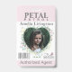 Personnalisez le badge de l'agent de patrouille pétale avec note de remerciement et cadre en forme de coeur avec des accents florissants pour votre fille de fleurs.photo.