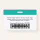 Personnalisez facilement ce badge de nom d'employé horizontal personnalisé avec photo, code à barres d'analyse ou code Qr et logo d'entreprise. Un design d'entreprise simple dans des couleurs bleu clair et blanc turquoise entièrement personnalisable en tailles avant et arrière, sans-serif polices basiques et modernes et un look professionnel et clair. Ces badges d'identification de sécurité standard sont disponibles avec cordon, clip métallique ou avec rétractable. Vous pouvez personnaliser vos cartes d'identification en choisissant n'importe quelle couleur arrière - plan et n'importe quel style de police avec l'éditeur Graphic Design en cliquant sur customiser plus loin. Pas de commande minimum.