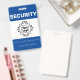 Ce badge d'identification personnalisé des employés des gardes de sécurité comporte un exemple de logo dans le centre. Le titre "SÉCURITÉ" est imprimé en caractères gras blancs sur un arrière - plan bleu. Vous pouvez inclure votre nom d'entreprise, d'entreprise ou d'organisation ou du texte supplémentaire sous le logo, ainsi qu'un nom d'employé. L'arrière de l'insigne contient des renseignements supplémentaires sur l'employé ou l'entreprise imprimés sur un arrière - plan bleu, avec un exemple de code à barres placé en bas. Vous pouvez remplacer le code de numérisation par le vôtre ou une autre image.