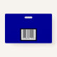 Insigne d'identification horizontale de l'employé avec le arrière - plan Royal Blue. Tous les éléments sont modifiables ou amovibles. Parmi les éléments suivants : photo de l'employé, nom de l'employé, nom de l'entreprise, ministère de l'employé. Le dos de la conception a une analyse de code barre de sécurité. Disponible en orientation horizontale. Assieds-toi au sommet pour Lanyard.