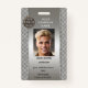 Carte d'identité photo en style de construction métallique avec espace pour votre photo et logo personnalisé. À l'arrière, vous pouvez ajouter un code à barres personnalisé ou un code QR ainsi que des textes supplémentaires ou supprimer les modèles.