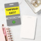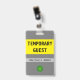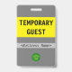 Cette conception respectable de badge comporte le message "TEMPORAIRE GUEST", ainsi qu'un nom d'entreprise personnalisable ou tout autre message personnalisé. Il dispose également d'un logo d'entreprise ou d'organisation personnalisable. Un badge comme celui-ci pourrait peut-être être utilisé pour indiquer qu'une personne est un invité ou un visiteur connu et autorisé dans une entreprise ou un lieu de travail. [~Z0000307]
