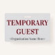 Cette élégante conception de badge comprend le message "TEMPORARY GUEST", ainsi qu'un nom d'entreprise personnalisable ou tout autre message personnalisé. Un badge comme celui-ci pourrait être utilisé pour indiquer que quelqu'un dans un lieu de travail ou une entreprise est un invité/visiteur autorisé. [~Z0000307]