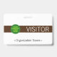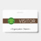 Ce design élégant de badge comporte le message "VISITOR", ainsi qu'un nom d'entreprise personnalisable ou tout autre message personnalisé. Un badge comme celui-ci pourrait être utilisé pour indiquer que quelqu'un dans un lieu de travail ou une entreprise est un invité/visiteur autorisé. [~Z0000307]