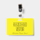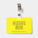 Ce design contemporain de badge comprend le message "VISITOR INSCRIT", ainsi qu'un nom d'entreprise personnalisable ou tout autre message personnalisé. Un badge comme celui-ci pourrait être utilisé pour montrer que quelqu'un dans une entreprise ou un lieu de travail est un invité ou un visiteur autorisé. [~Z0000307]