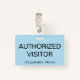 Ce badge de base comporte le message "AUTHORIZED VISITOR", ainsi qu'un nom d'entreprise personnalisable ou tout autre message personnalisé. Un badge comme celui-ci pourrait être utilisé pour indiquer que quelqu'un dans un lieu de travail ou une entreprise est un invité/visiteur autorisé. [~Z0000307]