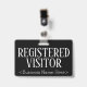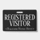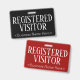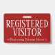 Cette élégante conception de badge comporte le message "VISITOR INSCRIT", ainsi qu'un nom de société personnalisable ou un autre message personnalisé. L'un des côtés est habillé d'un arrière - plan noir et l'autre d'un arrière - plan de couleur rouge foncé. Un badge comme celui-ci pourrait être utilisé pour indiquer que quelqu'un dans un lieu de travail ou une entreprise est un invité/visiteur autorisé. [~Z0000307]