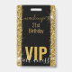 VIP Badge Pass Anniversaire Fête Invitation avec Motif de Parties scintillant d'or Bordure sur arrière - plan noir peut être personnalisée pour n'importe quel événement d'anniversaire d'âge est montré ici pour un 21e anniversaire. Un script de calligraphie à lettrage et des polices modernes pour un look chic et sophistiqué, coordonné avec un thème d'anniversaire noir et or. Modifiez le design comme vous voulez correspondre à votre partie, y compris les polices changeantes et la couleur arrière - plan. Parties scintillant est un motif imprimé, pas une vraie parties scintillant, donc vous n'avez pas à vous soucier d'un bordel !