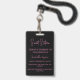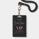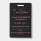 Invitation élégante à l'écriture noire et rose pour un Sweet Sixteen VIP avec badge personnalisé