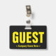 Cette conception de badge simple comporte le message « INVITÉ », ainsi qu'un nom de société personnalisable ou un autre message personnalisé. Un badge comme celui-ci pourrait être utilisé pour indiquer qu'une personne est un invité connu et autorisé ou un visiteur dans une entreprise ou un lieu de travail. [~Z0000307]