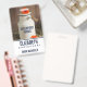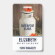 Insigne de nom avec un thème rustique. Une photo d'une cruche de lait blanc et de quelques fleurs d'orange placées autour de la boîte de lait. Assis dans une grange sur un foin. Panneaux en bois dans l'arrière - plan.