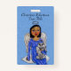 Cet insigne de nom ou d'identification est bleu-clair avec un ange portant une robe bleue avec les étoiles blanches, avec les yeux bleus lumineux, se reposant sur un nuage tenant son chat blanc d'ange. Tous les deux ont les halos argentés. Customisez votre nom et information avec les modèles.