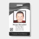 badge abstrait personnalisé avec un design noir ondulé moderne cool au-dessus de la photo de l'employé de l'ingénieur logiciel ou du technicien de réparation informatique. Ajoutez votre propre photo et vos informations personnalisées, y compris le titre du poste, le nom du département, le numéro d'identification, la date d'émission ou d'expiration et le nom et le logo de l'entreprise ou de l'entreprise. Peut être customisé avec votre code à barres de sécurité personnel sur le dos pour l'accès et l'autorisation.