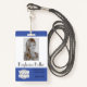 Un design minimaliste et simple avec un arrière - plan bleu clair et blanc, une photo, un code barre et un modèle de logo. Customisez facilement ce badge à votre marque. -conçu avec Zaubershirts-