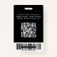 Un badge d'identification d'employé noir moderne et professionnel avec leur photo, leur nom dans un script blanc élégant et leur titre en lettres blanches simples, et le logo de votre entreprise ou organisation. Au verso, ajoutez des informations supplémentaires et des codes QR et barres optionnels.