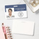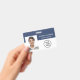 Un badge d'identification d'employé bleu moderne et professionnel avec leur photo, leur nom et leur poste, ainsi que le logo de votre entreprise ou de votre organisation. Au verso, ajoutez des informations supplémentaires et un code QR facultatif.