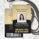 **Veuillez noter que le fond est imprimé pour avoir l'apparence de métal, mais le produit n'est pas fait de métal et n'est pas une feuille métallique.** Représentez votre entreprise avec style en fournissant à votre personnel des badges d'identification modernes et professionnels. Le logo, la photo, le code-barres et tout le texte de ce modèle sont faciles à personnaliser. Le design noir et or présente un fond métallisé faux avec un arc incurvé élégant, votre logo d'entreprise, une photo carrée, le nom et le titre de l'employé, et un code-barres / UPC au verso. Il peut fournir une organisation et une sécurité pour le personnel de l'entreprise, tout en présentant l'image de marque de l'entreprise avec une apparence classique et élégante. Veuillez noter que l'or est une couleur imprimée, et non une feuille métallique.